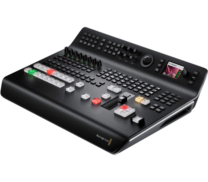 El ATEM Television Studio Pro 4K SDI es un mezclador de vídeo profesional todo en uno con panel de control integrado. Ofrece conmutación en directo en resolución Ultra HD 4K, 8 entradas SDI, efectos en tiempo real, incrustación de gráficos y mezcla de audio. Ideal para producciones en vivo, streaming y eventos multicámara de alta calidad.