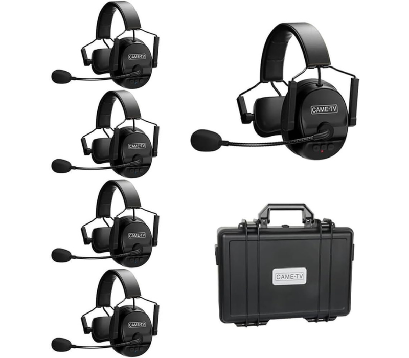 El CAME-TV Kuminik8 es un sistema de intercom inalámbrico de 5 puestos, ideal para rodajes. Ofrece comunicación full dúplex, hasta 10 horas de autonomía y un alcance de 450 metros, todo sin necesidad de cables.